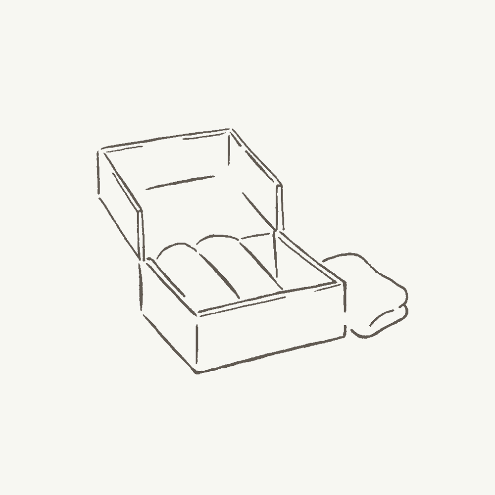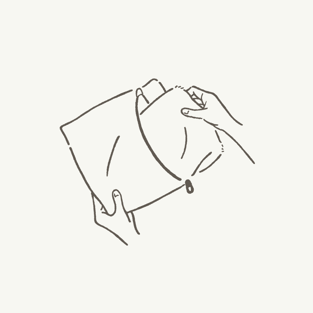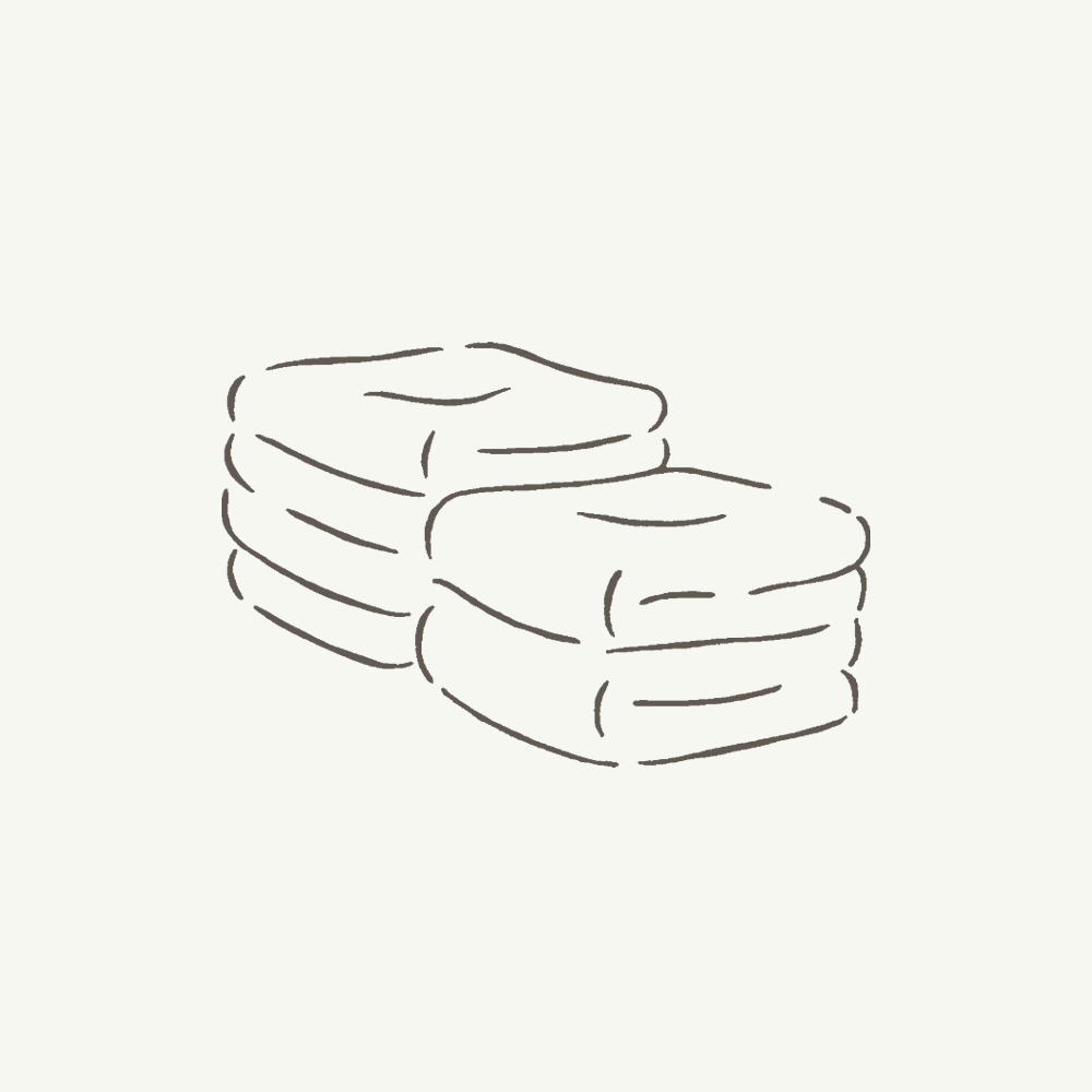 Wellisのタオルは、バスタオルの縦幅60cm、フェイスタオルとウォッシュタオルの縦幅40cmのデザインで設計しています。バスタオルは縦を3つ折りに、フェイスタオルとウォッシュタオルは縦を2つ折りにして横を畳み込むことで、どれもがA4サイズほどの同一の大きさに収めることが可能。棚に重ねて並べても統一感が生まれ、スマートで美しいと感じていただけるのも、Wellisならではのこだわりです。
