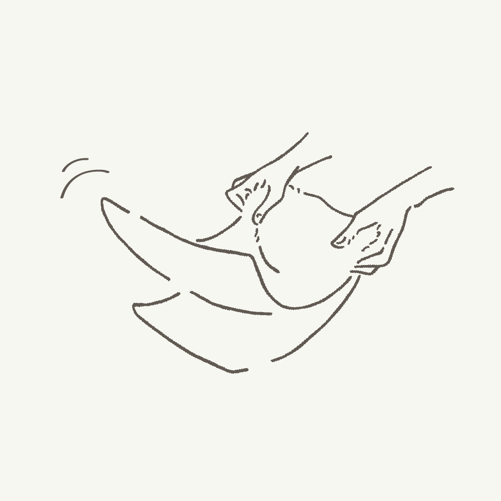 日光に当てすぎると乾燥しすぎてしまうため、日陰で風通しの良い場所で干すのが最適です。干す前にはタオルを10~20回ほど上下に振り、パイルを立ち上げてから干すことで、お使いの際には『優しく美しい肌ざわり』をさらに実感していただけます。また、タオルの耐久性に多少の影響はありますが、乾燥機をお使いになるとさらにふっくらやわらかな仕上がりをお楽しみいただけます。