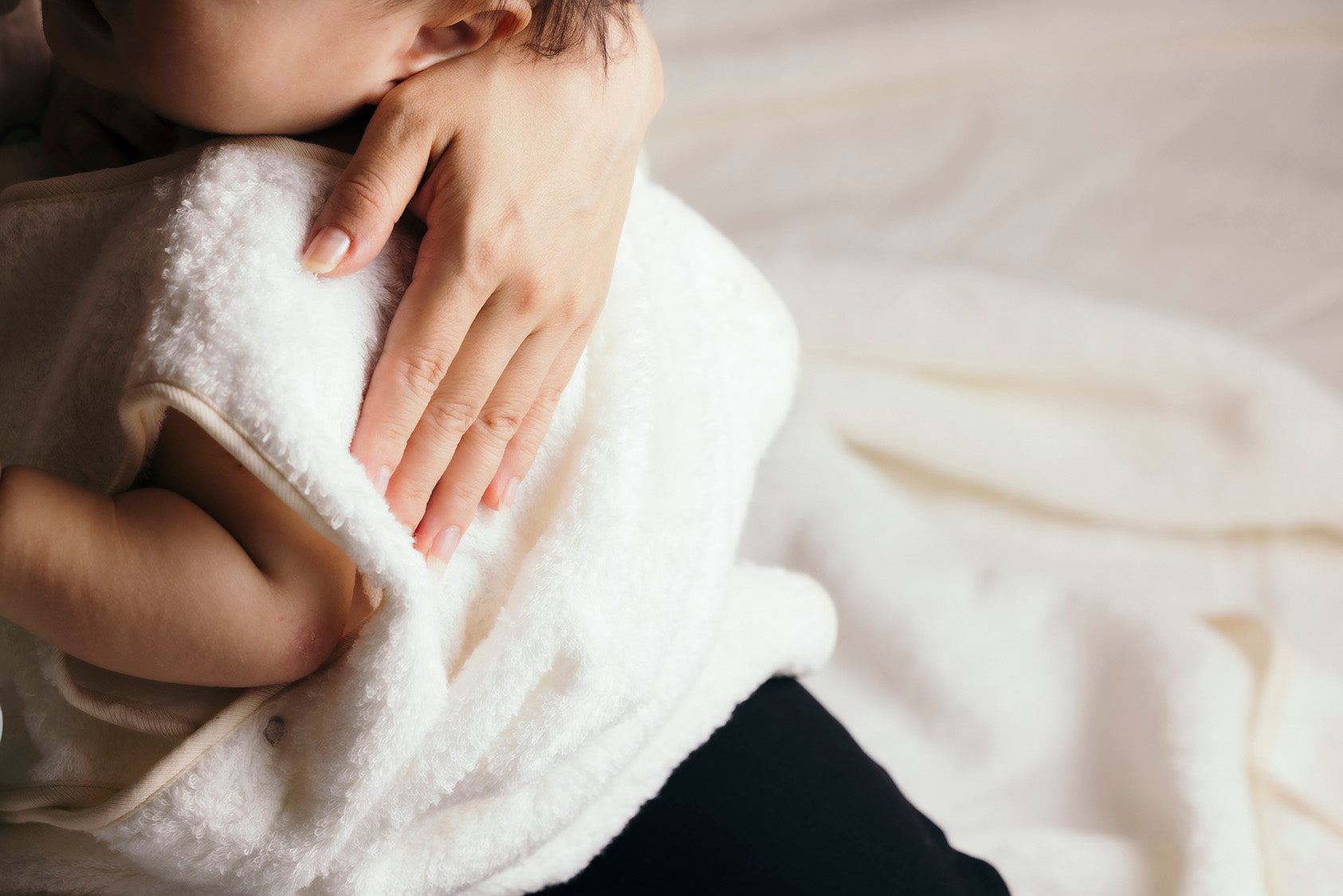 お風呂上がり後は、湯冷めや寝冷えをしないよう、Wellis BABYのスリーパーをどうぞ。