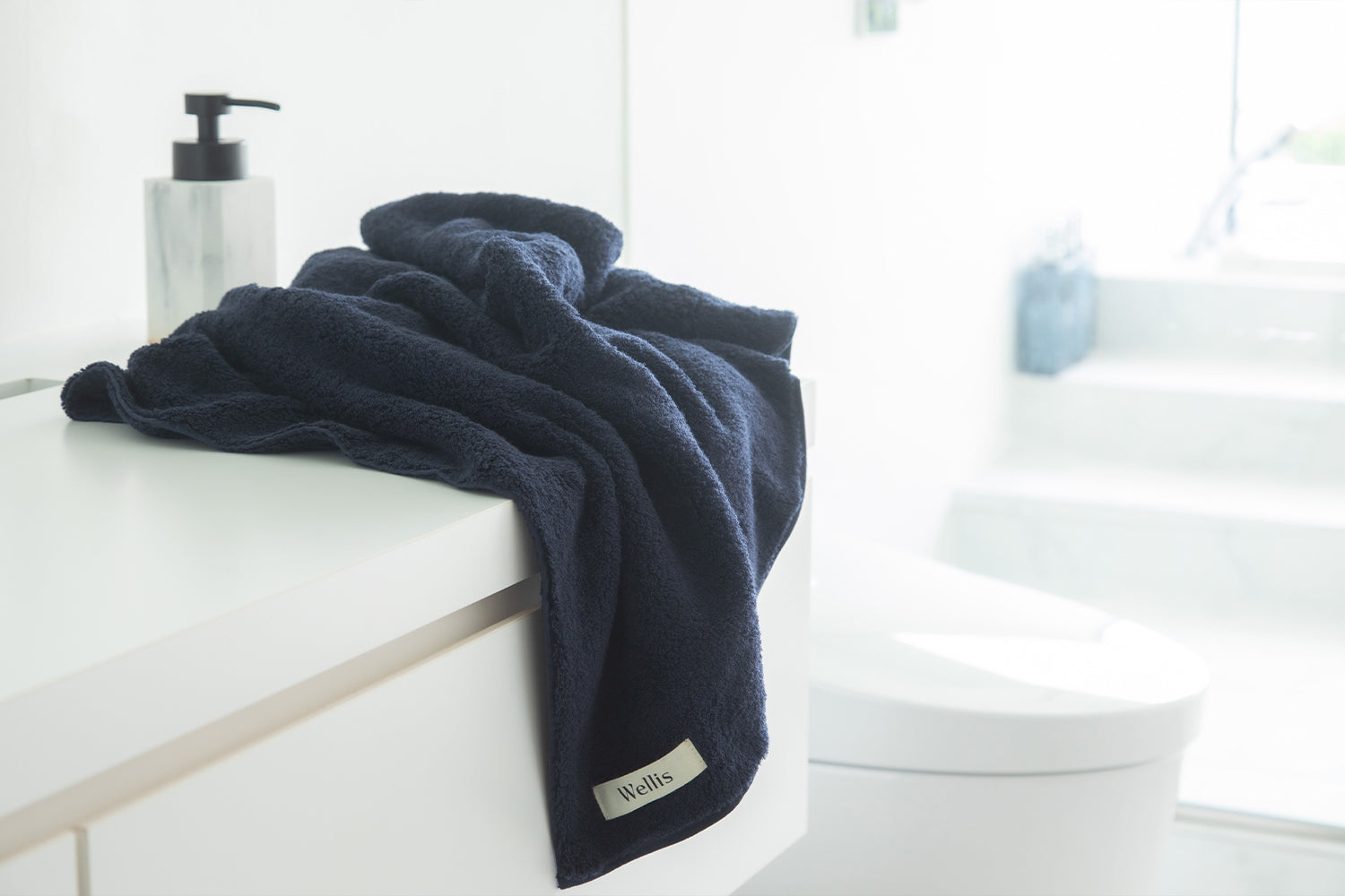 お風呂上がりは、優しく包むようにあてるだけで吸水し、肌に負担なくご使用いただけるWellisのタオルをどうぞ。