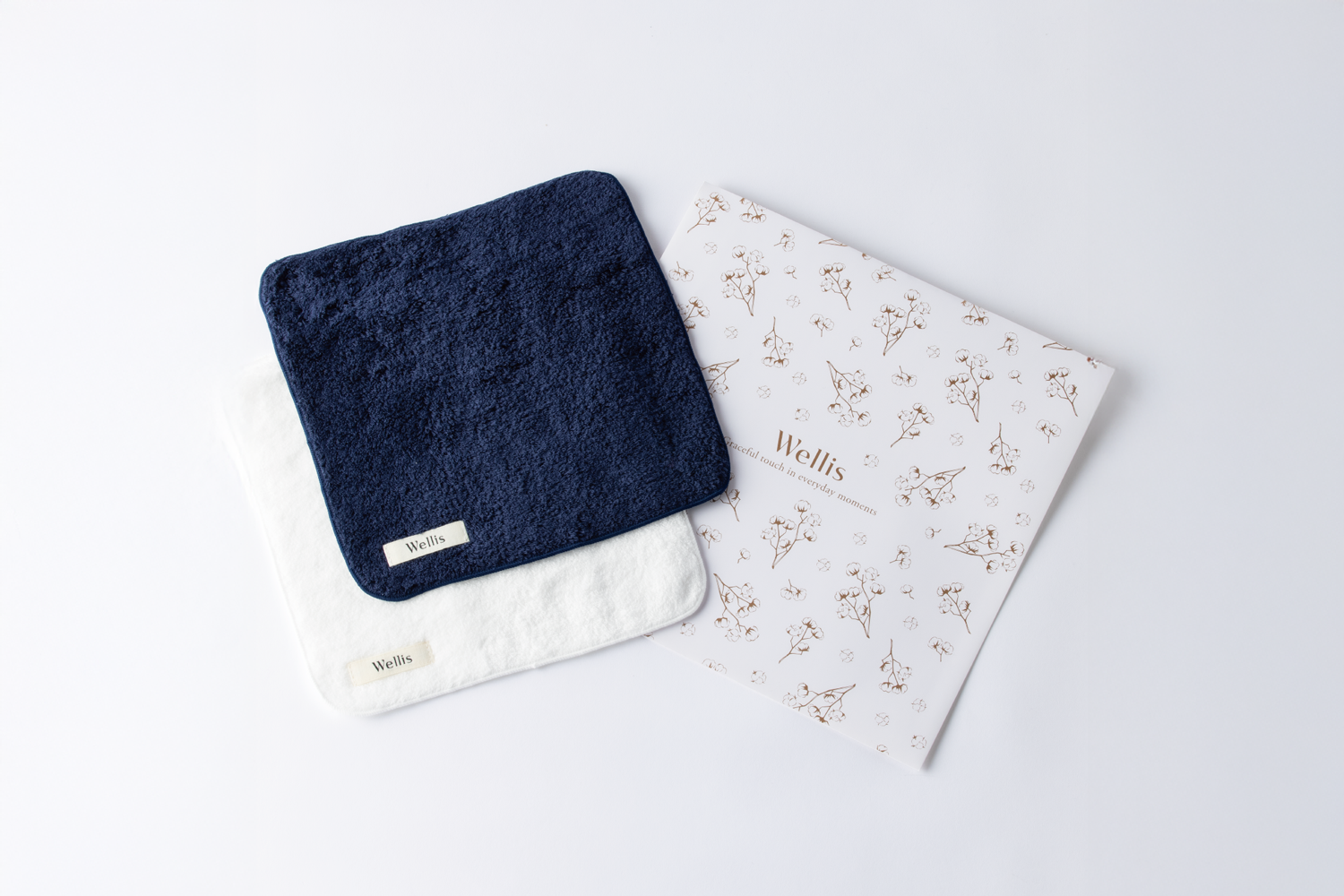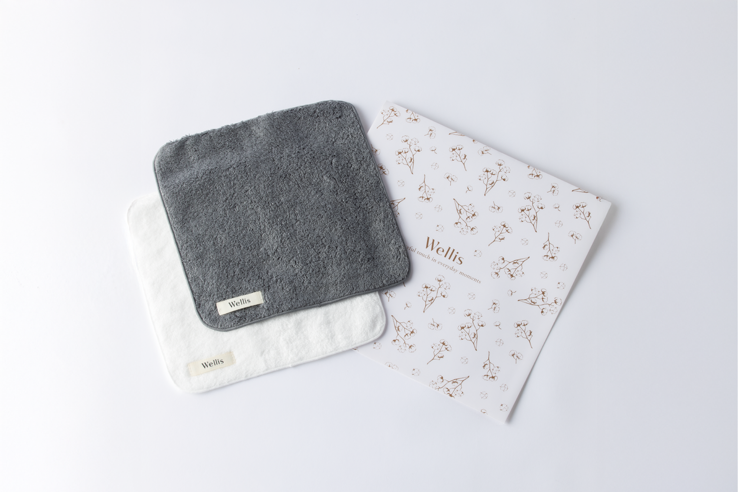 Wellisのロゴと綿花をあしらった上品な封筒にお包みしてお届けするので、そのままギフトとしてお渡しいただけます。