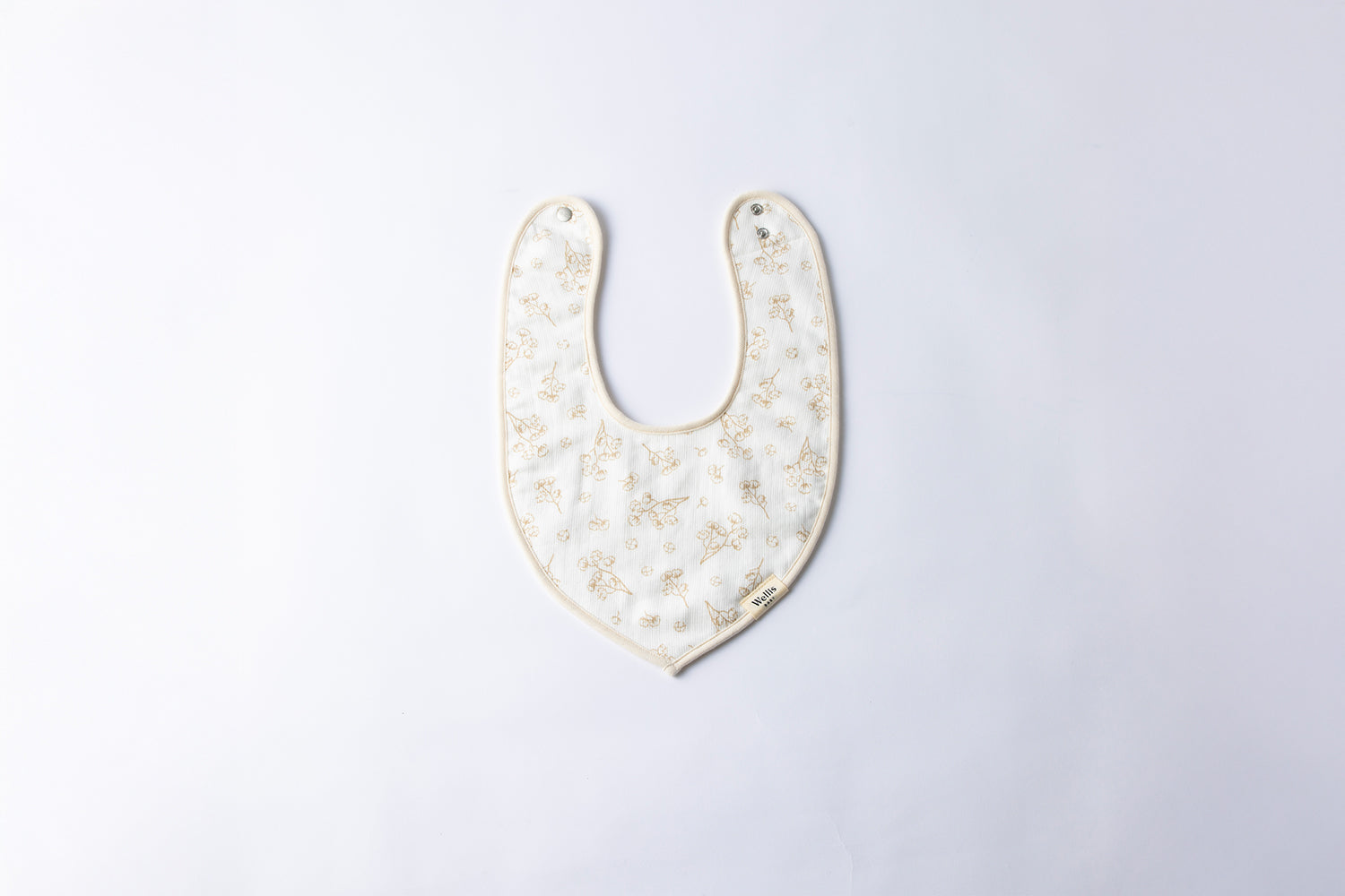 お子様の肌に触れるものだから、優しくやわらかな着け心地にこだわりました。オーガニックスーピマコットンのロングパイル生地を使用しており、吸水性が高く乾きも早いので、よだれや食べこぼしから衣服をしっかり守り、清潔に保つことができます。 スタイリッシュなバンダナ型で、どんなコーディネートにも合わせやすいシンプルなデザインとなっているため、性別を問わずご使用いただけます。簡単に装着できるようスナップボタン式になっており、Largeサイズは成長に合わせて2 段階の調整が可能です。